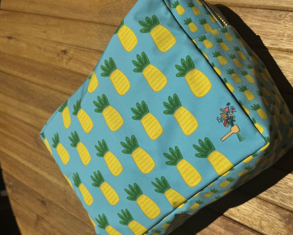Neceser de tela impermeable con diseño exclusivo de Mirador Art Studio. Ideal para cosméticos, playa o como organizdores de viaje. Medidas: 30x23x10 cm
