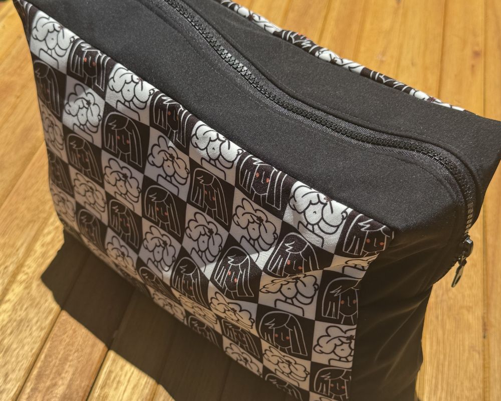 Neceser de tela impermeable con diseño exclusivo de Mirador Art Studio. Ideal para cosméticos, playa o como organizdores de viaje. Medidas: 30x23x10 cm